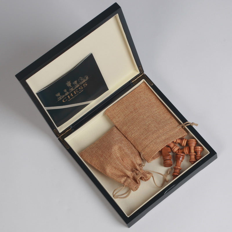 Material de las piezas de ajedrez: Árbol de loto (puede exportarse tras tratamiento anticorrosión y antipolilla)